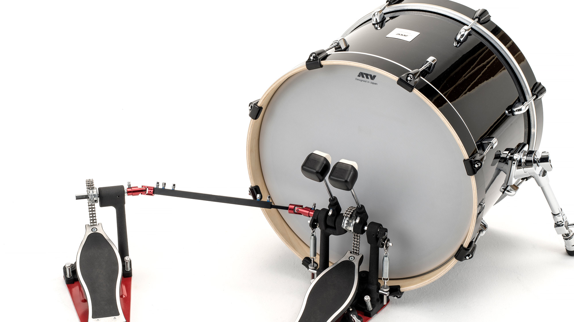 演奏を⽀える軸となるキックには、安定感と⾼速な発⾳が必要です。ビーターによる打撃のダンピングとセンシングを両⽴するための独特な緩衝構造により、ソリッドなフィールとともに⾼速な発⾳を実現しました。18"シェルと⼤型のスパーによって得られる安定感や安⼼感の中で⼼地良くビートが刻めます。また、ツインペダルを使⽤したハードな連打にも、安定したセンシングと演奏性を発揮します。